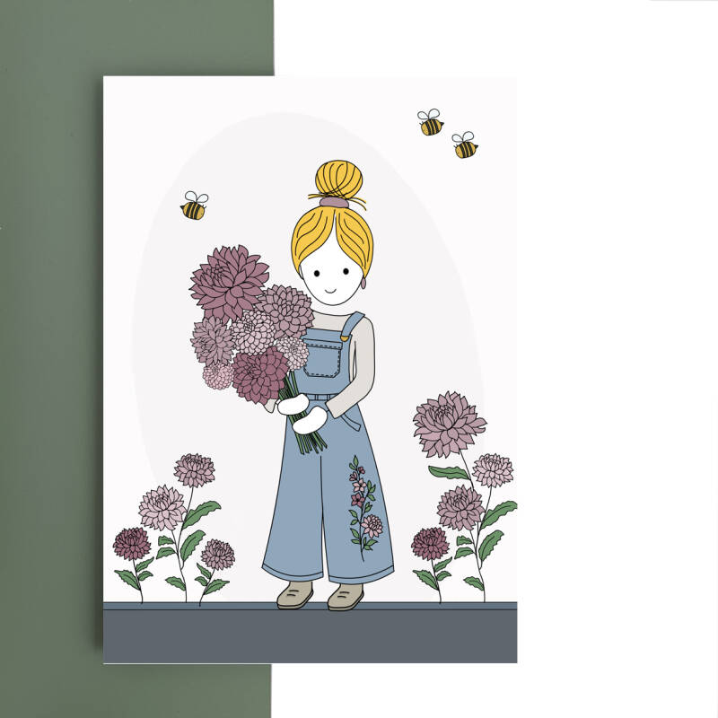 wenskaart - dahlia meisje blauw